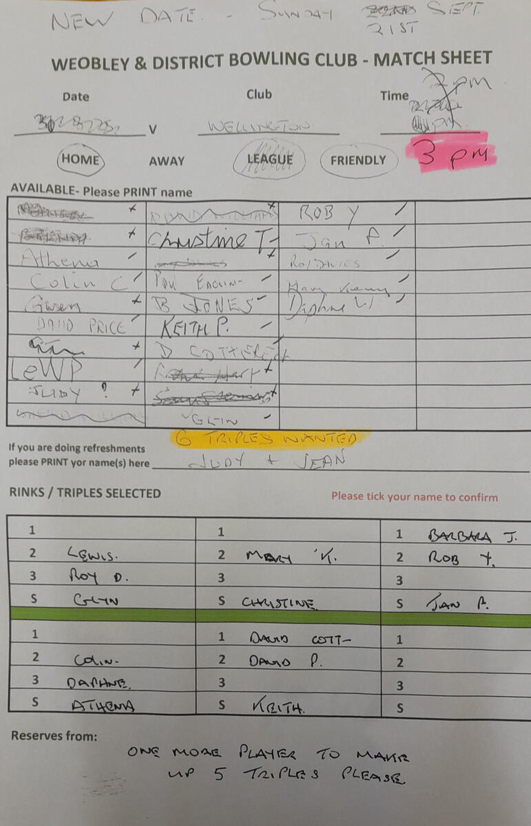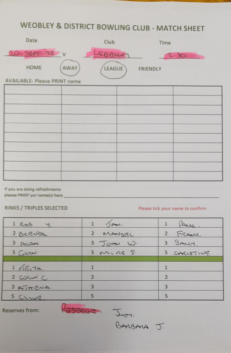 Please note that once selected the teams for the up-coming matches will appear in a gallery below, if you are selected and can't now play then please contact the captain as soon as possible in order that a replacement can be found.