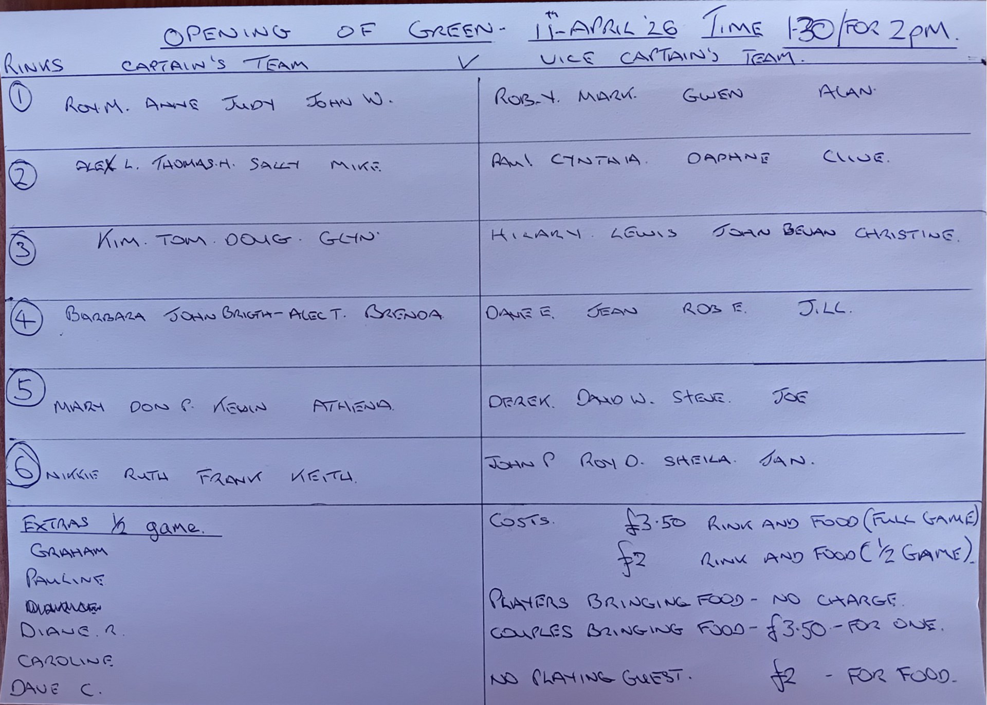 Please note that once selected the teams for the up-coming matches will appear in a gallery below, if you are selected and can't now play then please contact the captain as soon as possible in order that a replacement can be found.